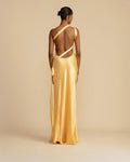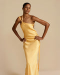 Yellow One Shoulder Satin Maxi Dress with Slit