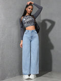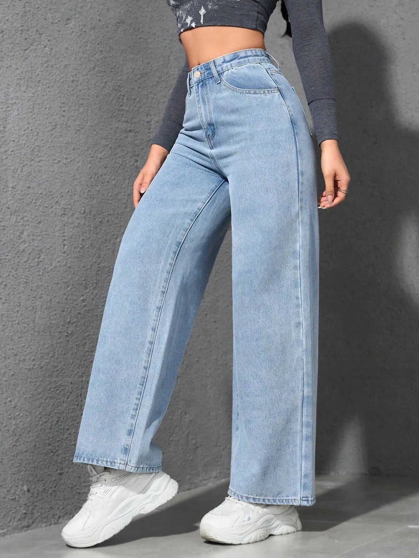 Update your denim collection with these dark blue high waist wide leg jeans, designed for a flattering fit and effortless style. The high-rise waist creates a sleek silhouette, while the wide leg cut delivers comfort and a modern edge.