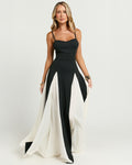 - Charming Details: The thin straps and straight neckline add a delicate and feminine touch, balancing the boldness of the contrast. Every detail has been designed to enhance your beauty and ensure you feel impeccable from every angle.