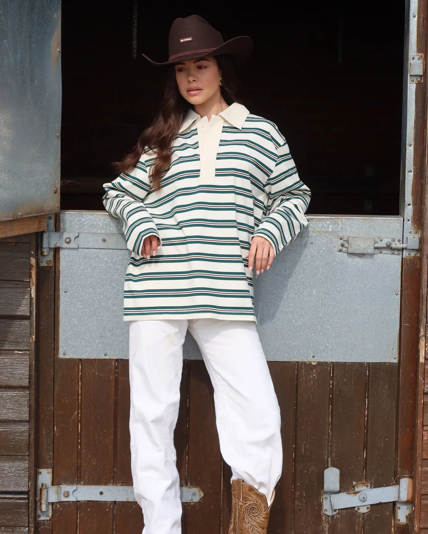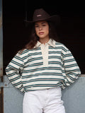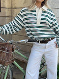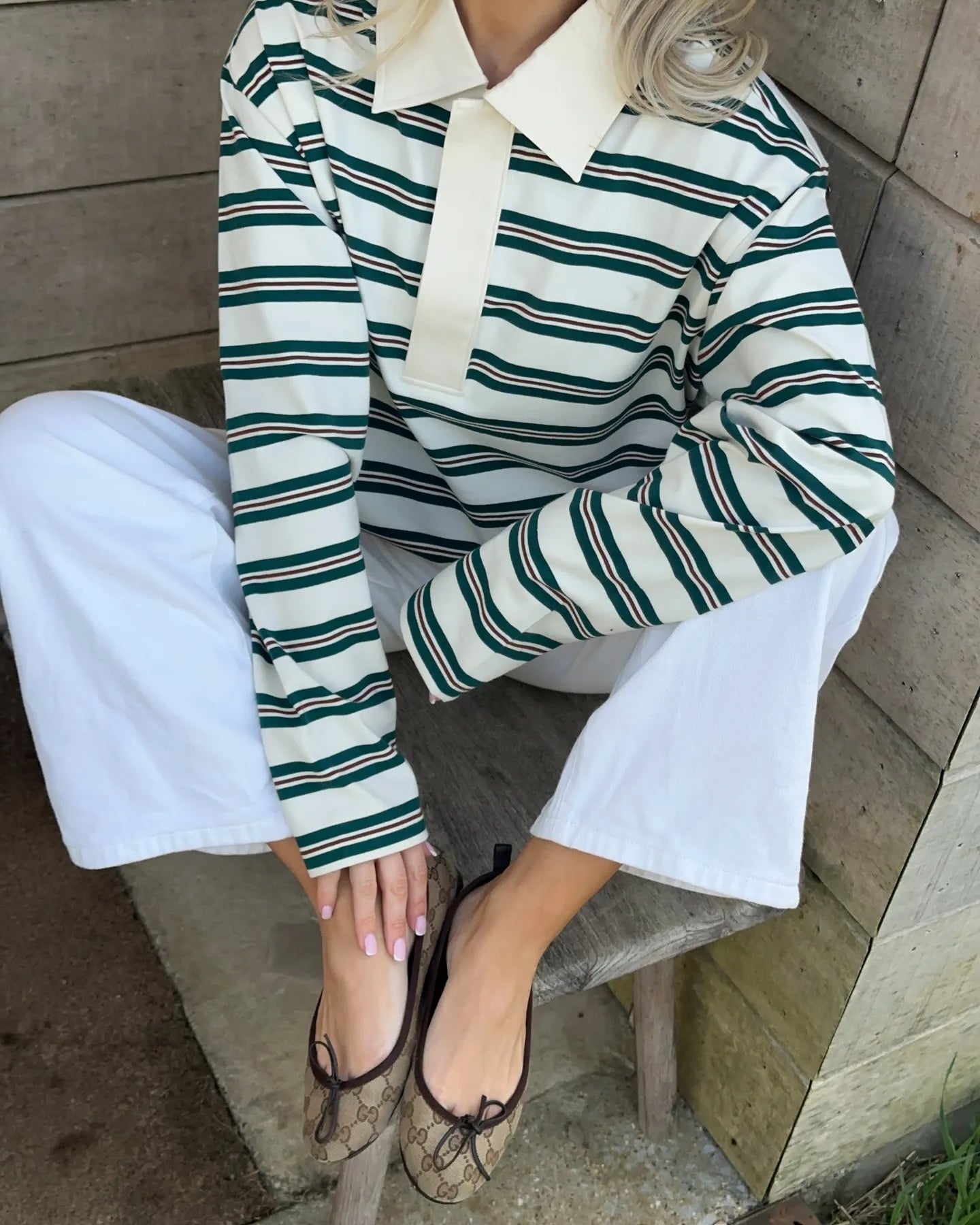 Upgrade your casual staples with this striped long sleeve polo top, available in green, black and white. Designed with a relaxed fit and a classic polo collar, it blends comfort with timeless style for everyday wear.